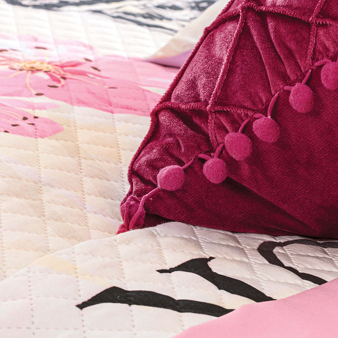 • Queen incluye: • 1 Colcha | • 2 Fundas Decorativas| • 2 Cojines| • Juego de Sabanas