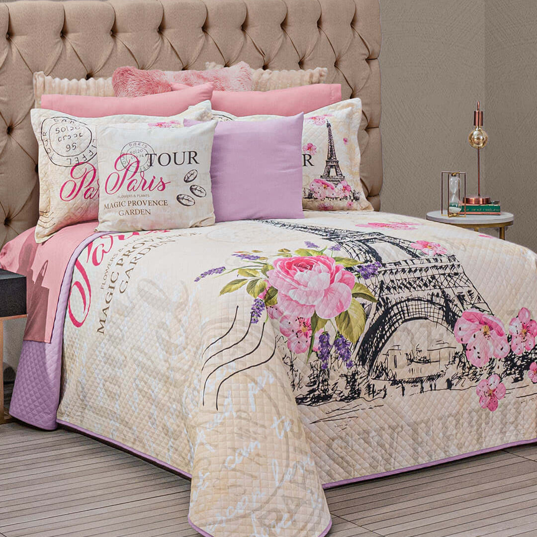 El coordinado de colcha Paris magic, es un completo juego que incluye fundas decorativas, cojines y juego de sabanas, es tan linda , su diseño alusivo a parís la hace ideal para una habitacion romantica y femenina.