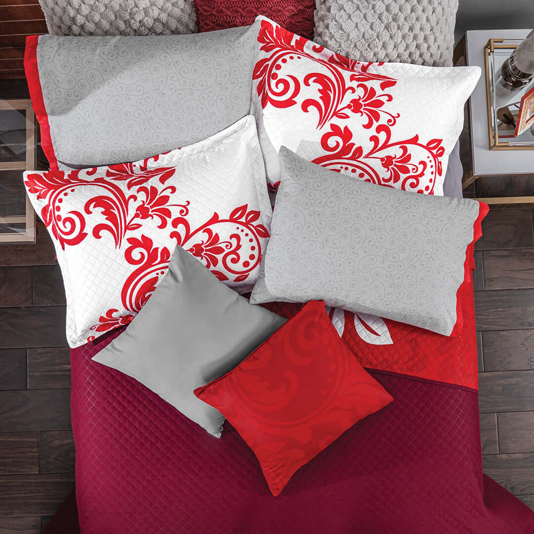 El coordinado de colcha Villareal, es un completo juego que incluye, una colcha, fundas decorativas, 2 cojines, y un lindo juego de sabanas, combinables entre si, dale todo el color y vida a tu habitacion con el coordinado de Colcha Villareal en color Rojo, además tienes la posibilidad de combinar este juego con la cortina Villareal para un look más completo.