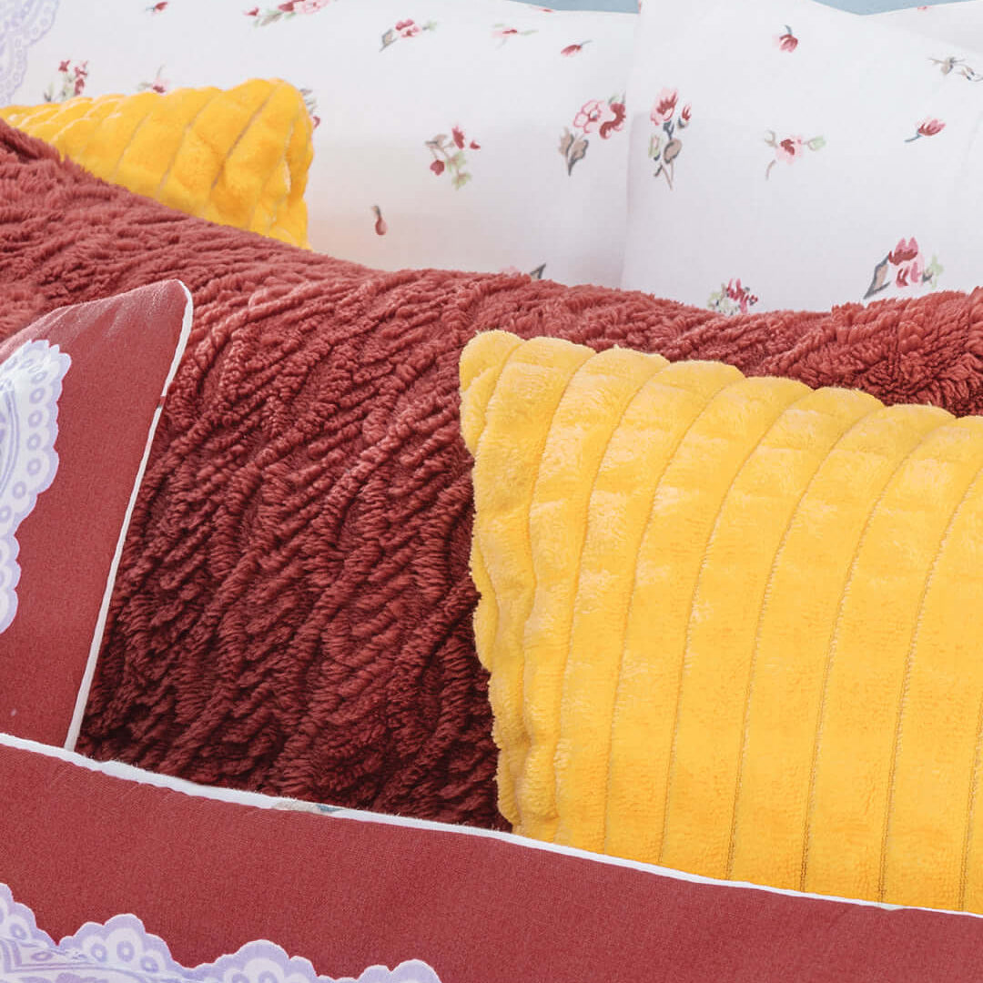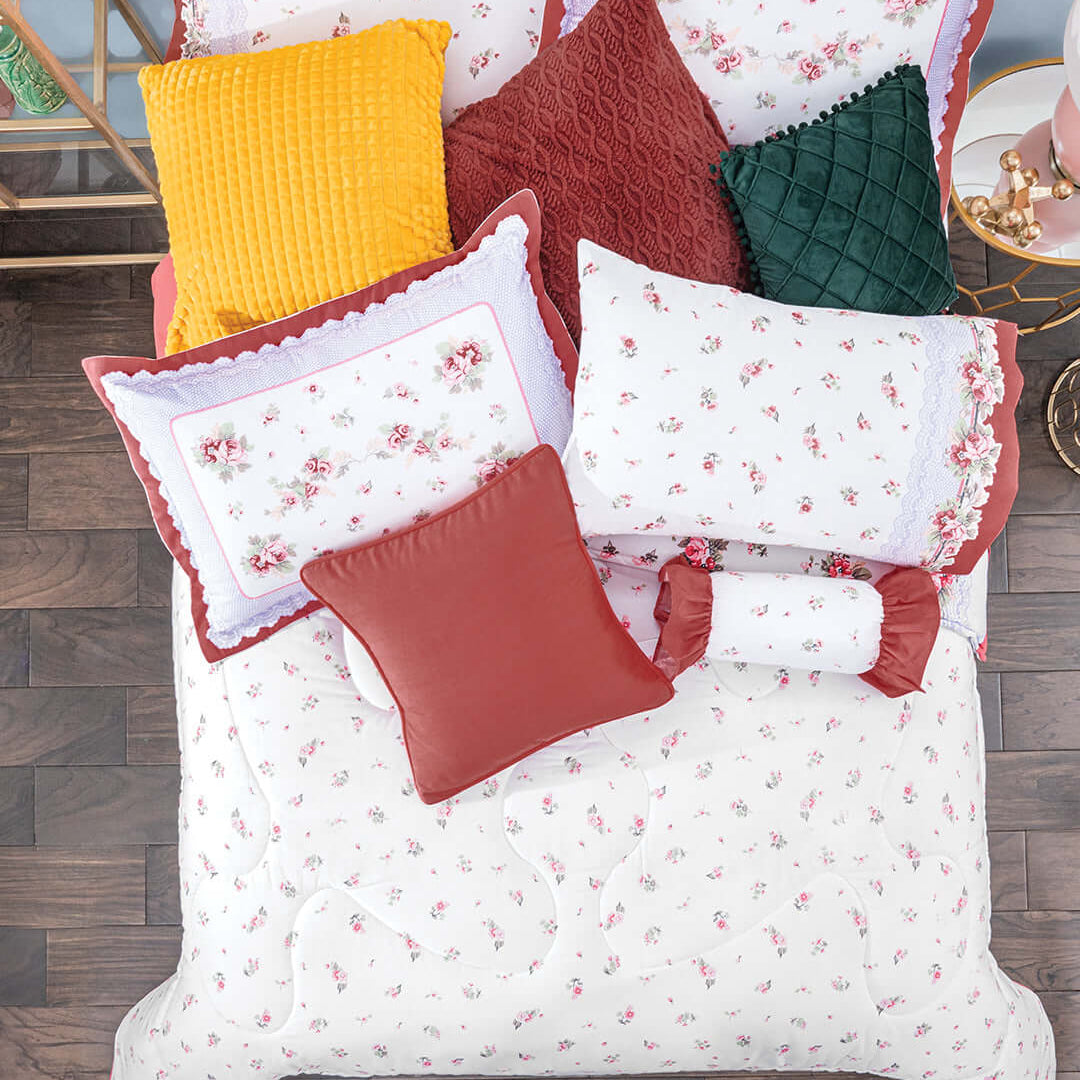 • Full incluye: • 1 Edredon (2,00 m x 2,25 m/79" x 89")| • 2 Fundas Decorativas| • 2 Fundas de Almohada |   • Juego de Sabanas | • 2 cojin Decorativo | • 1 Roda Pie